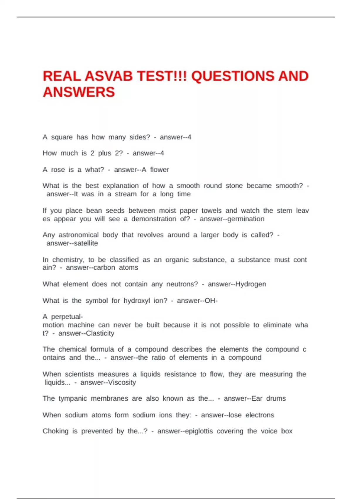 REAL ASVAB TEST!!! QUESTIONS AND ANSWERS