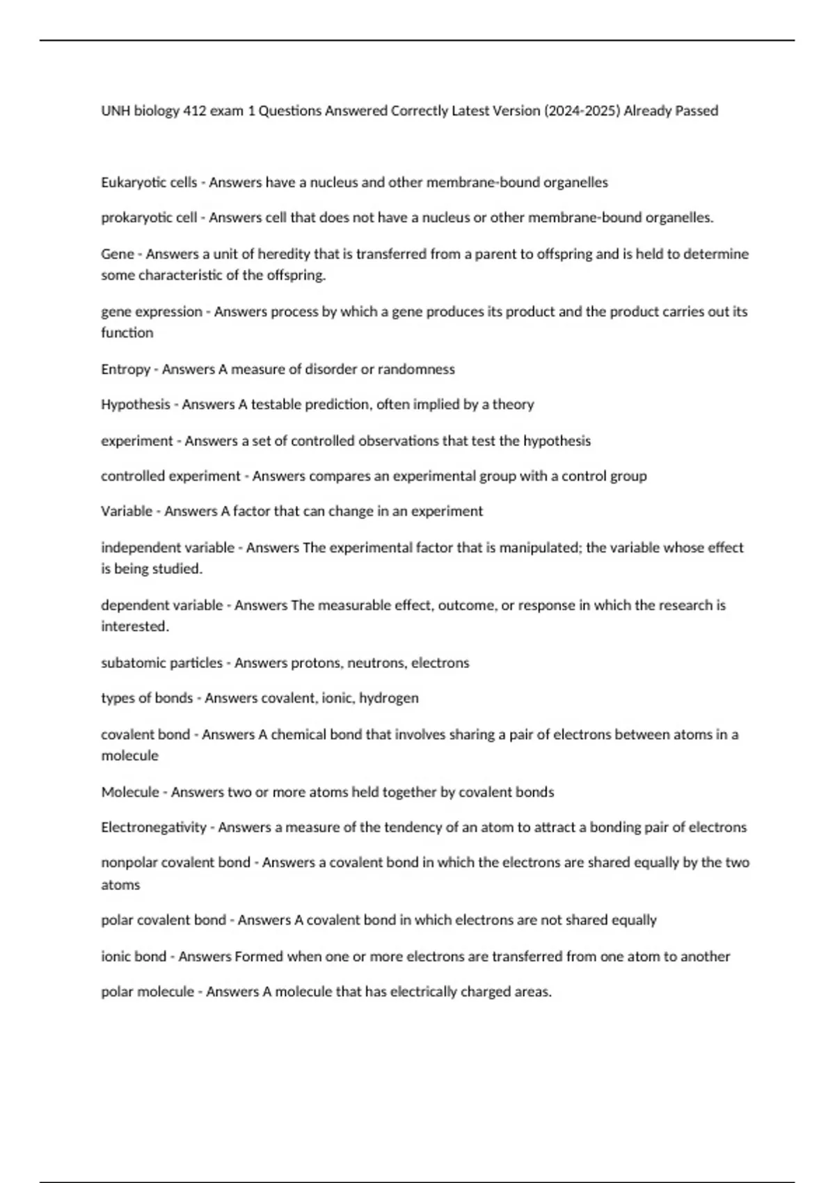 UNH biology 412 exam 1 Questions Answered Correctly Latest Version () Already Passed