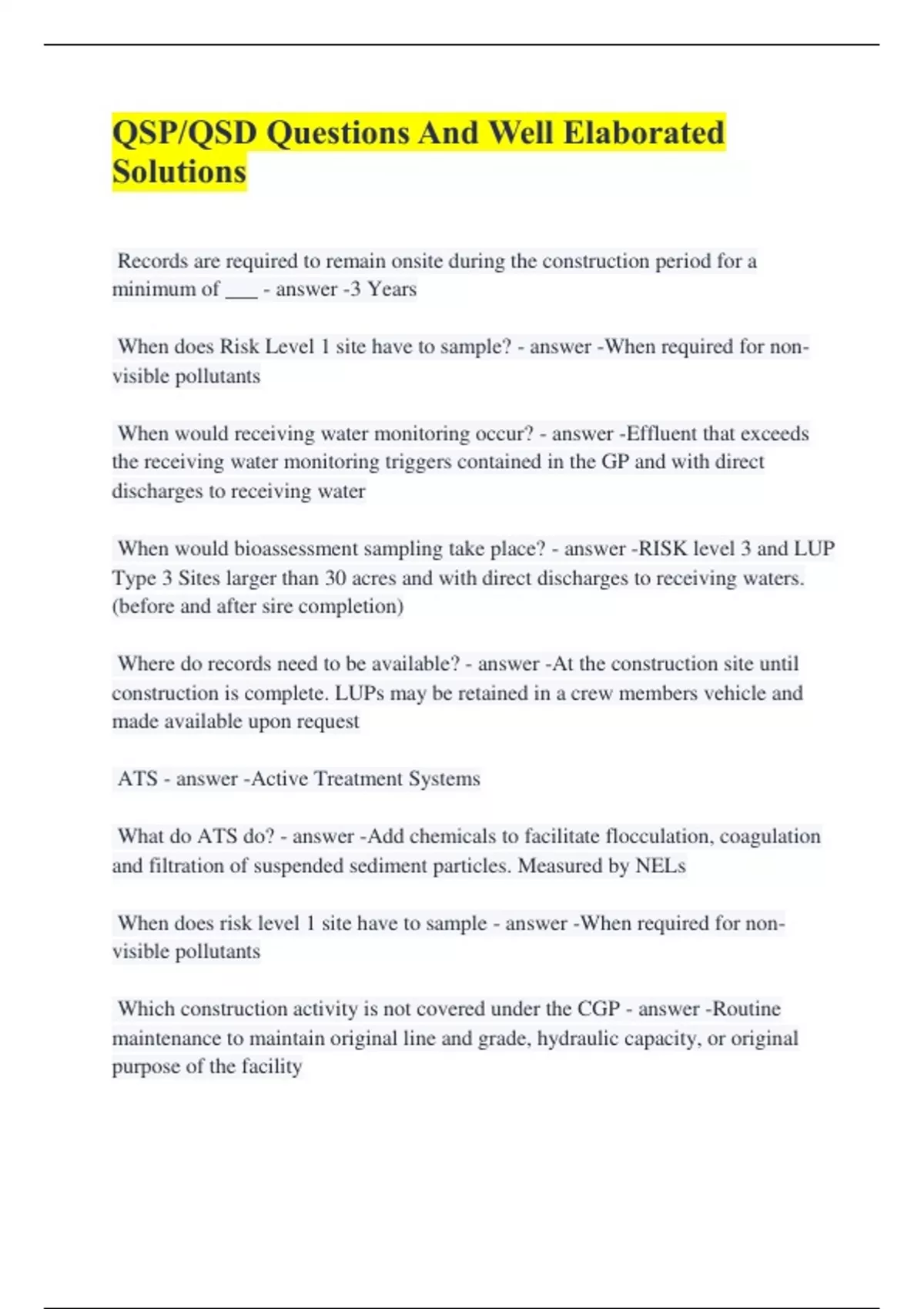 QSP Exams Questions And Solutions |latest updates| Verified Answers