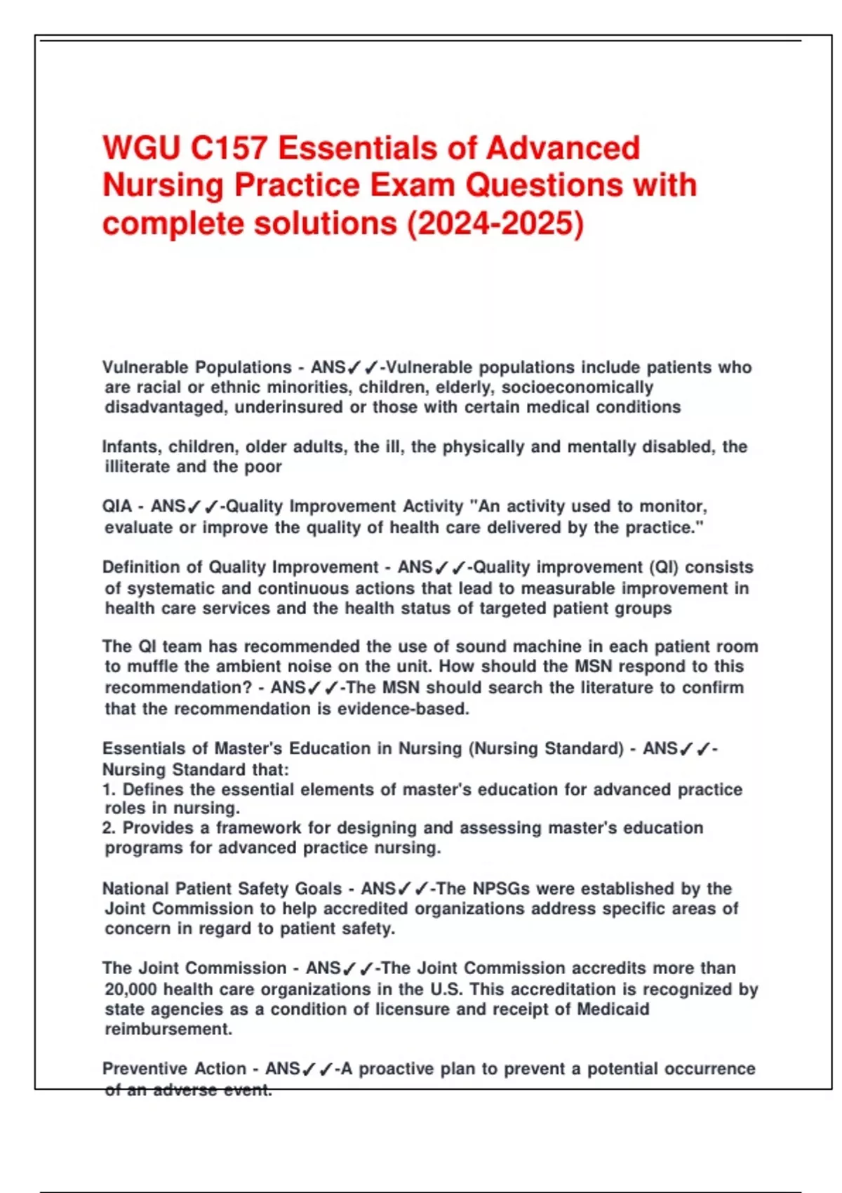 WGU NURSING BUNDLED EXAM 2024/2025 WITH 100% CORRECT ANSWERS