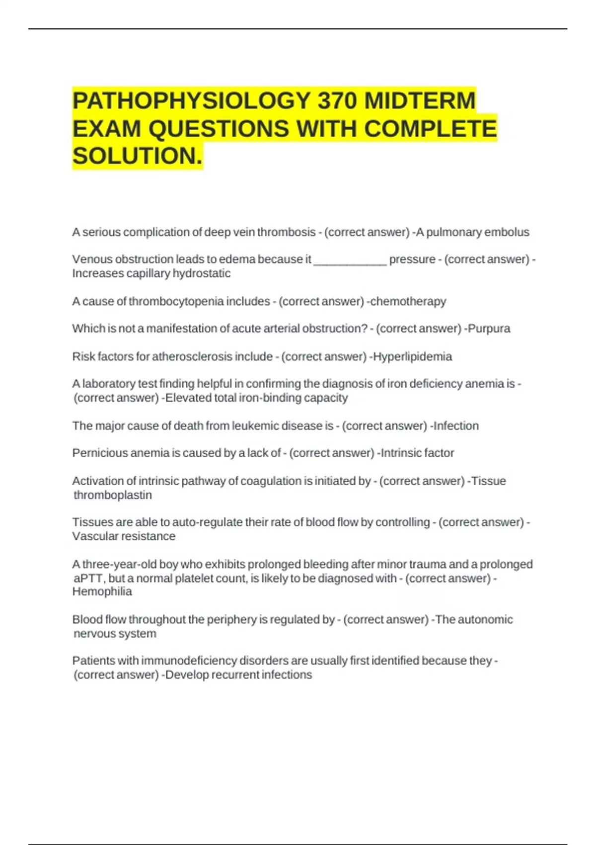 PATHOPHYSIOLOGY 370 MIDTERM EXAM QUESTIONS WITH COMPLETE SOLUTION.
