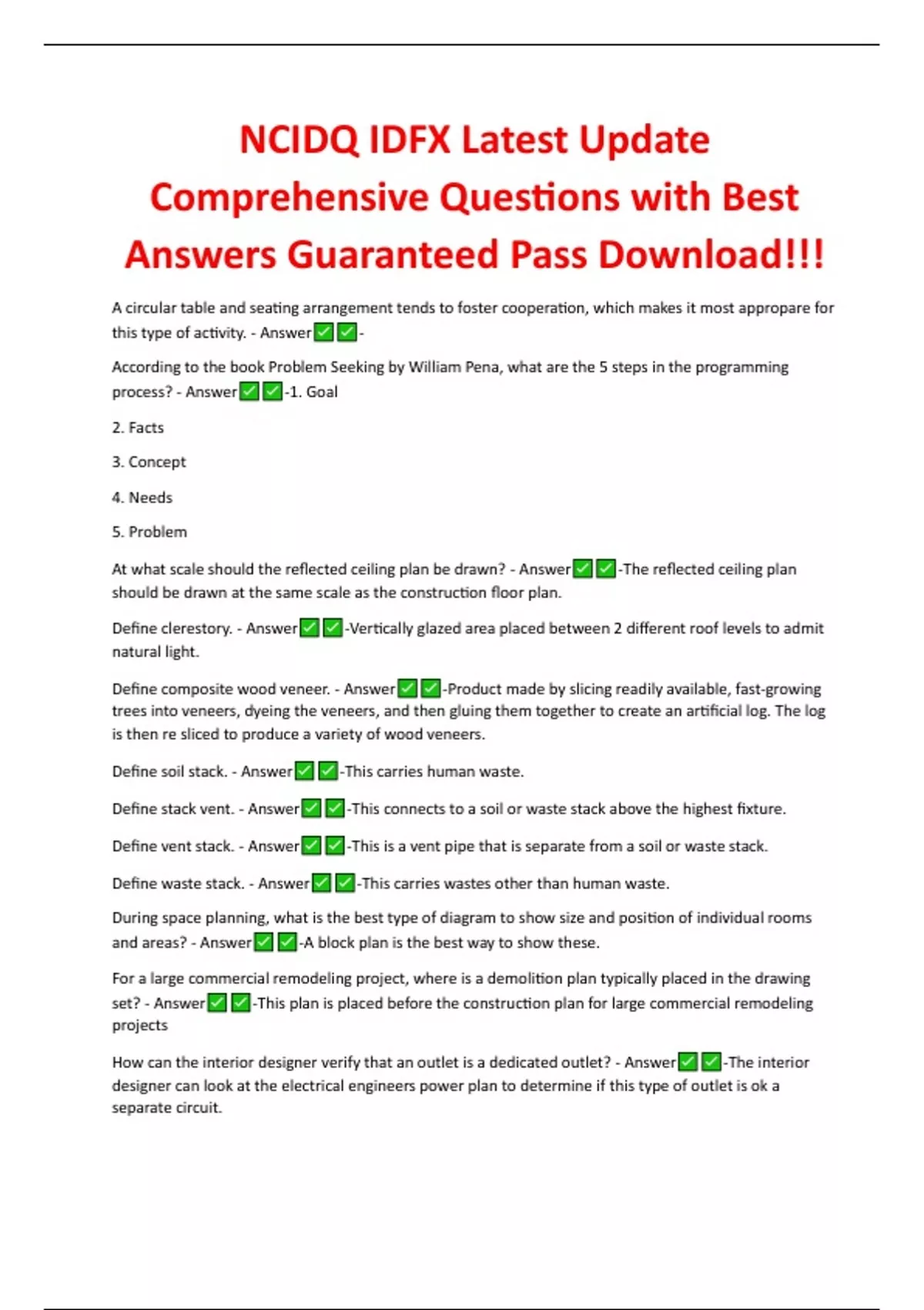 NCIDQ – IDFX Latest Update Comprehensive Questions with Correct Answers Guaranteed Perfect Score Download!!!