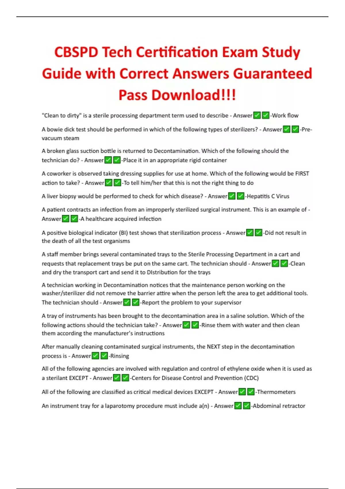 CBSPD Tech Certification Exam Study Guide with Correct Answers Guaranteed Pass Download!!!