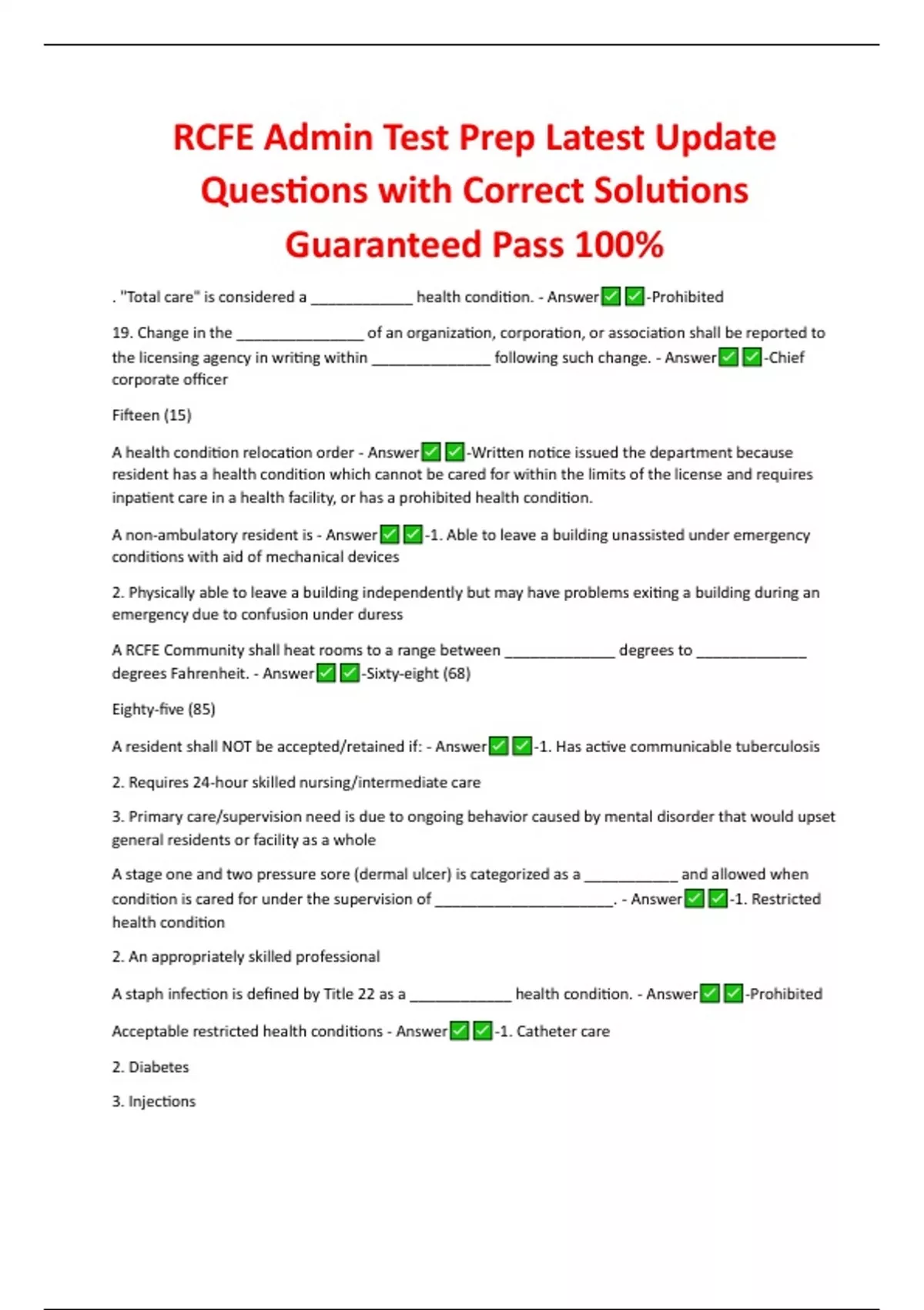 RCFE Admin Test Prep Latest Update Questions with Correct Solutions Guaranteed Pass 100%
