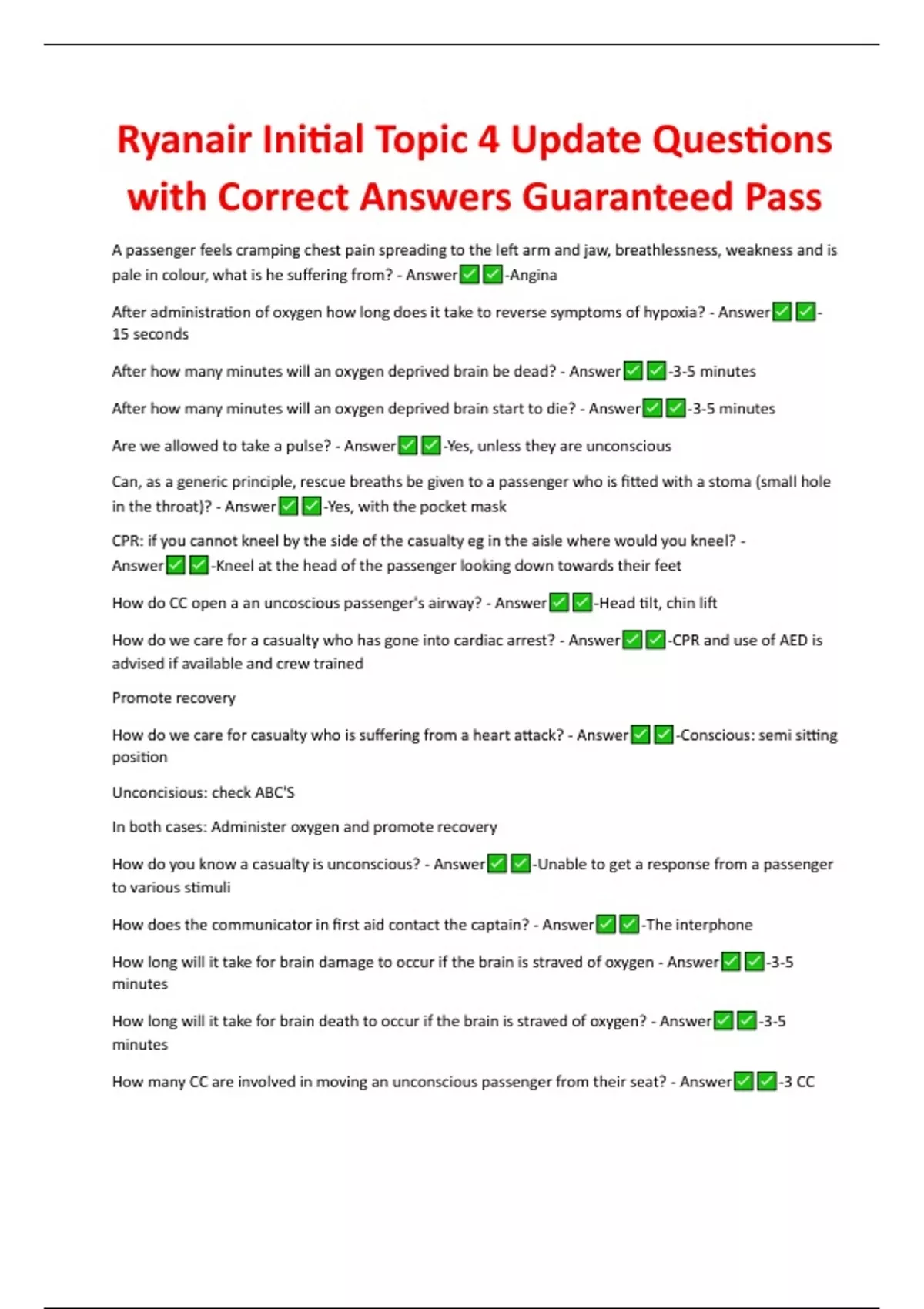 Ryanair Initial Topic 4 Update Questions with Correct Answers Guaranteed Pass