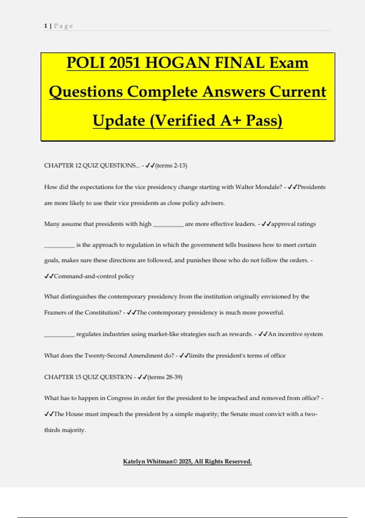 POLI 2051 Bundled Exams Questions and Answers 100% Pass Guaranteed.