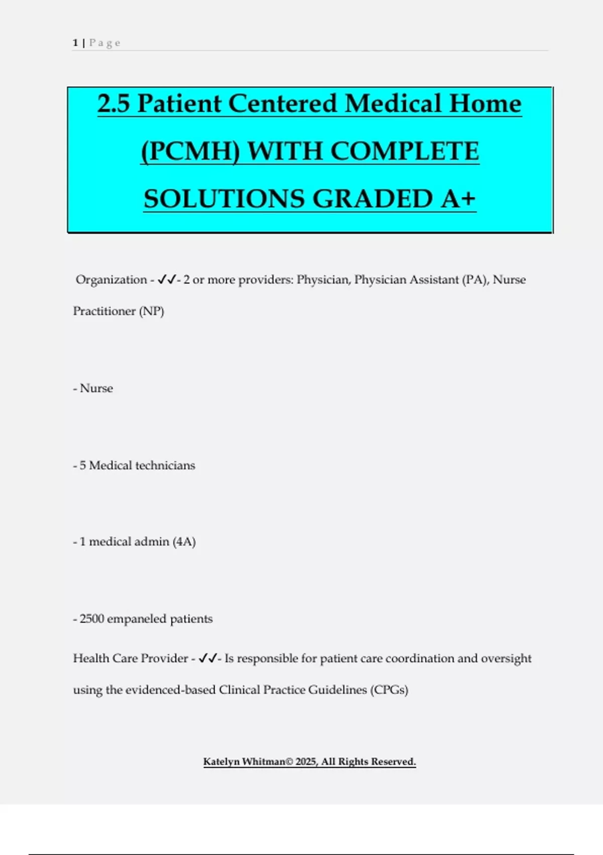 2.5 Patient Centered Medical Home (PCMH) WITH COMPLETE SOLUTIONS GRADED A+