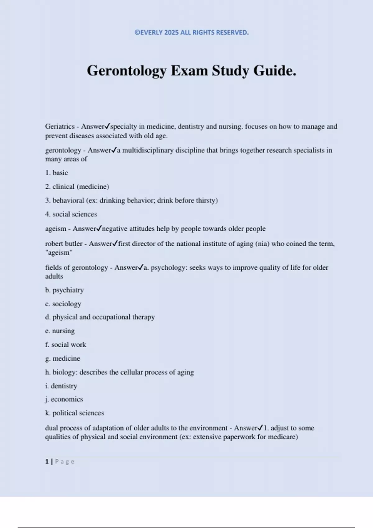 Gerontology Exam 1 Questions And Answers 100% Pass.