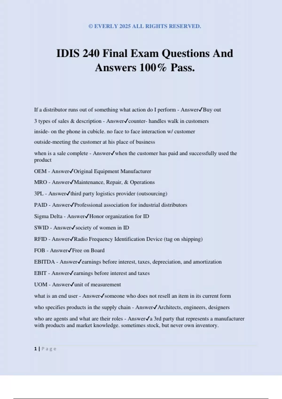 IDIS 240 Bundled Exam 100% Pass.