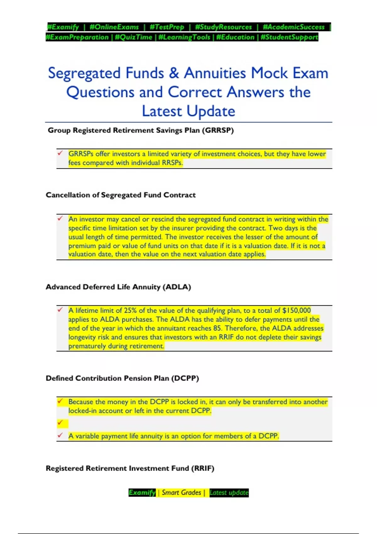 Segregated Funds & Annuities Mock Exam Questions and Correct Answers the Latest Update