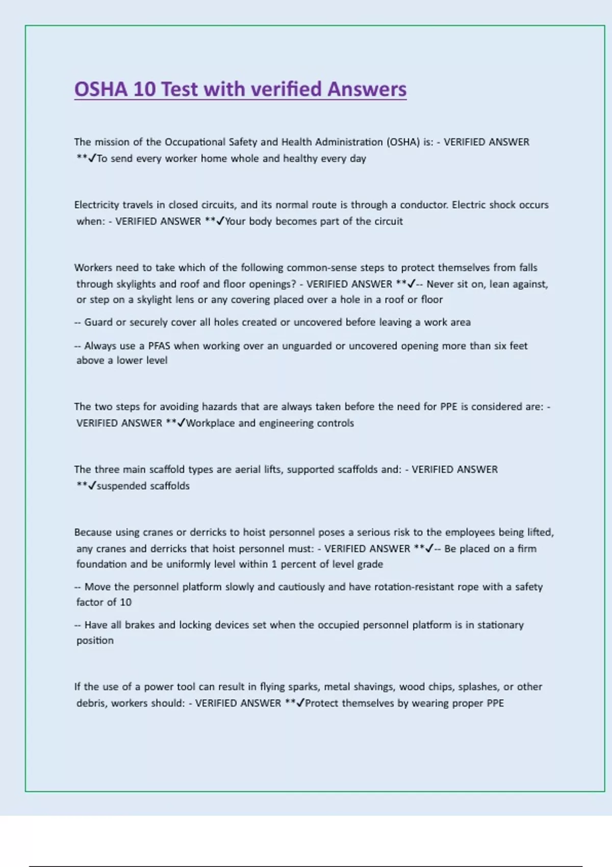 OSHA 10 exam bundle with verified Answers