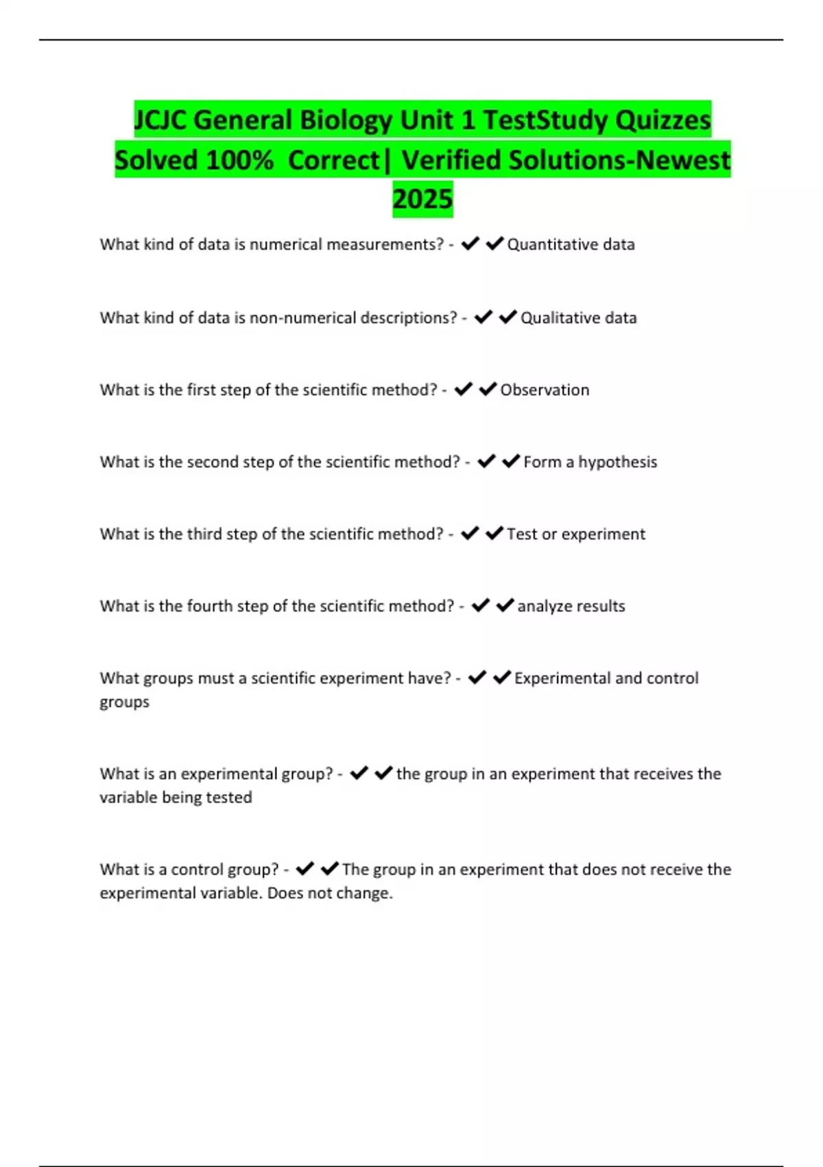 JCJC General Biology Unit 1 TestStudy Quizzes Solved 100% Correct| Verified Solutions-Newest 2025