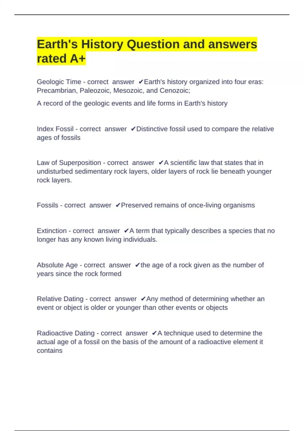 Exam (elaborations) module 4 ersc 1p94 Question and answers verified to pass 2025 Exam (elaborations) Midterm 1 ERSC 223 Questions with complete solution 2025 Exam (elaborations) ERSC181 questions and answers already solved 2025 Exam (elaborations) ERSC181 Physical Geology Week 1.questions with complete solutions 2025 Exam (elaborations) ER