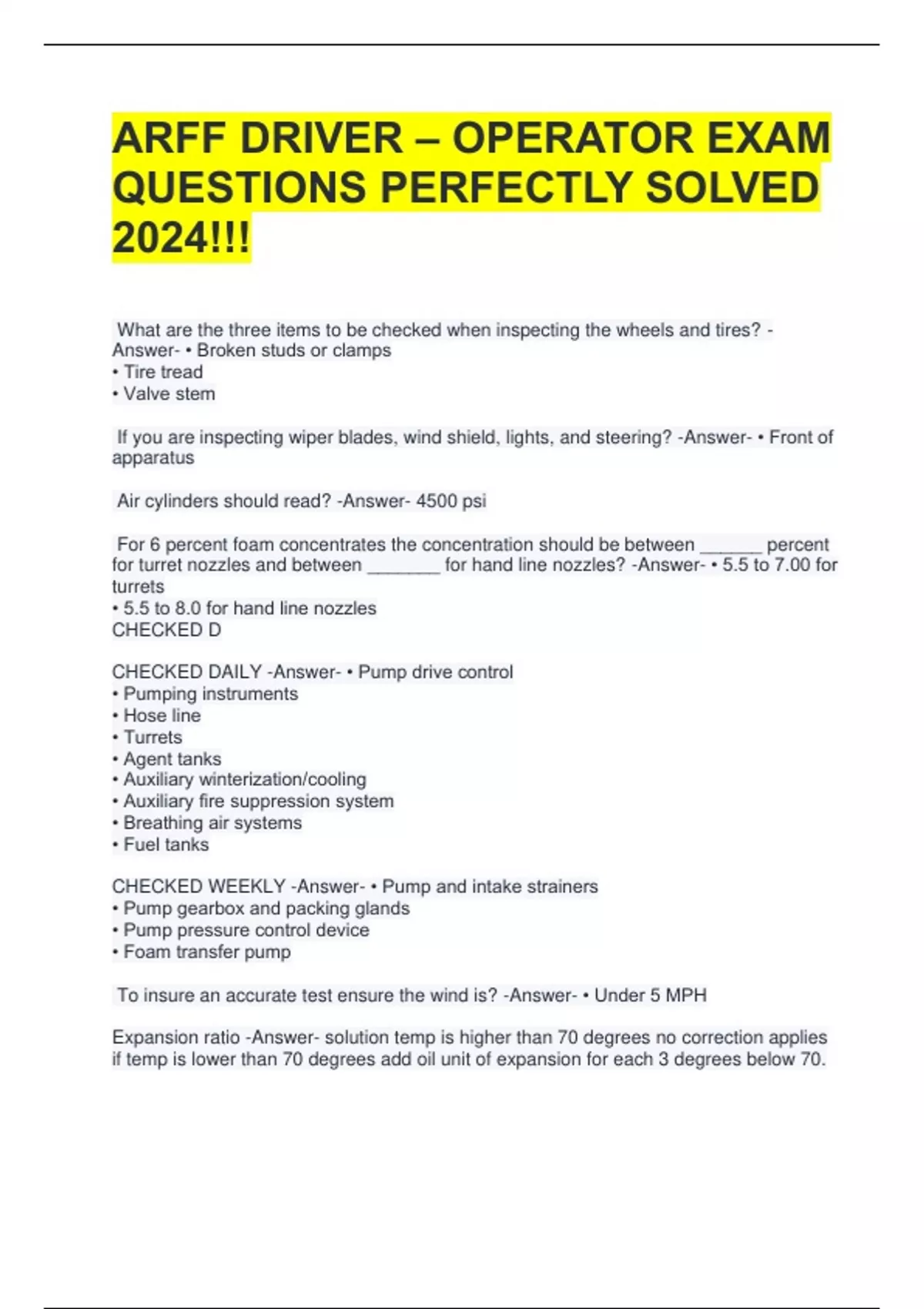 Bundle For ARFF DRIVER – OPERATOR EXAM QUESTIONS PERFECTLY SOLVED 2024!!!
