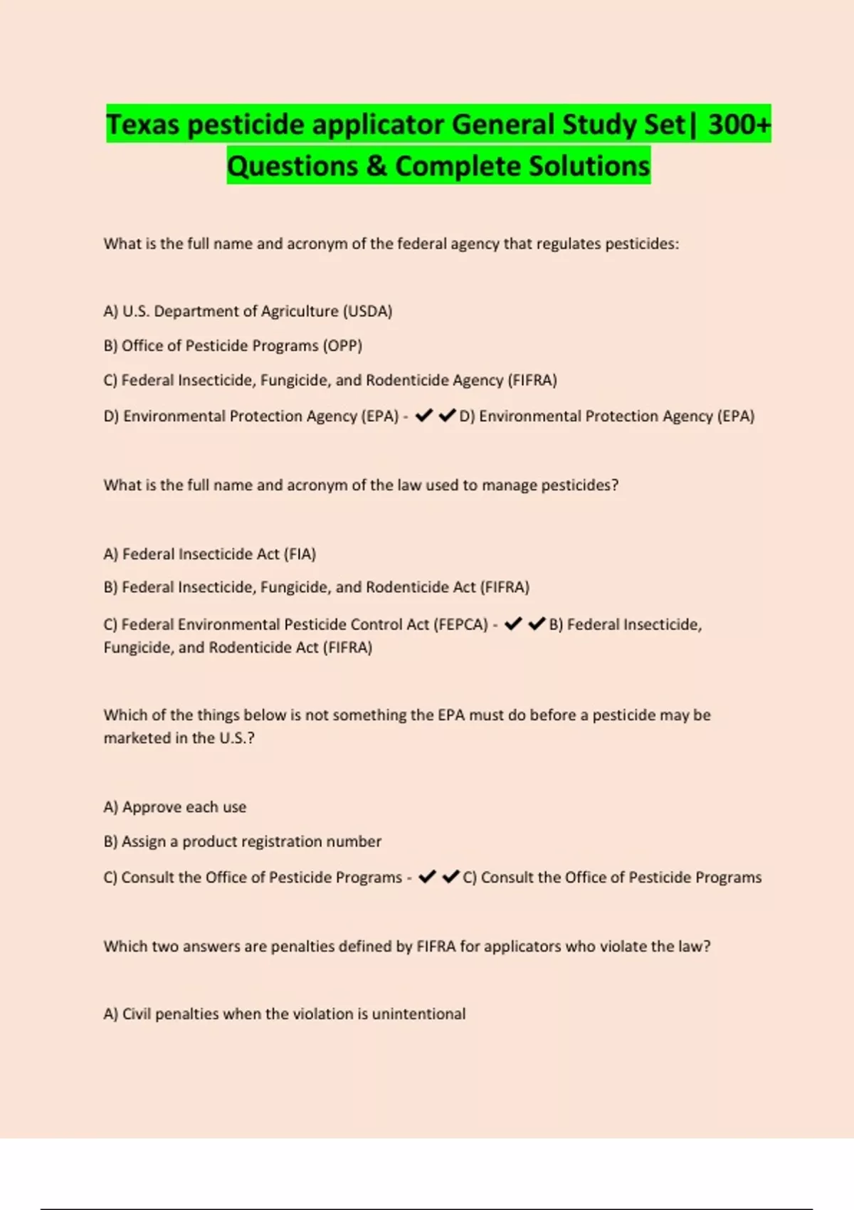 Texas pesticide applicator General Exam Questions & Complete Solutions