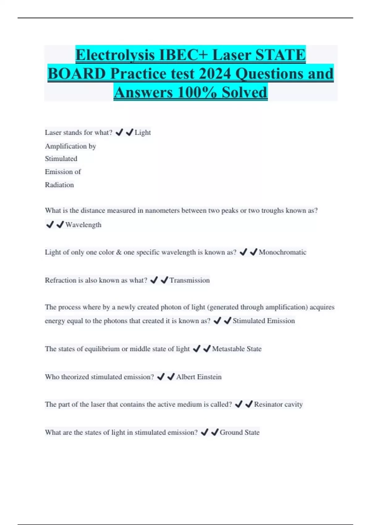 IBEC STATE BOARD Practice test Questions and Answers 100% Solved 15 Exam (elaborations) IBEC TEST PREP MOIIII QUESTIONS AND ANSWERS 100% SOLVED 16 Exam (elaborations) IBEC Study Guide Electrology Questions and Answers 100% Solved 17 Exam (elaborations) Laser/IBEC – isolation Questions and Answers 100% Solved 18 Exam (elaborations) IBEC State Ex