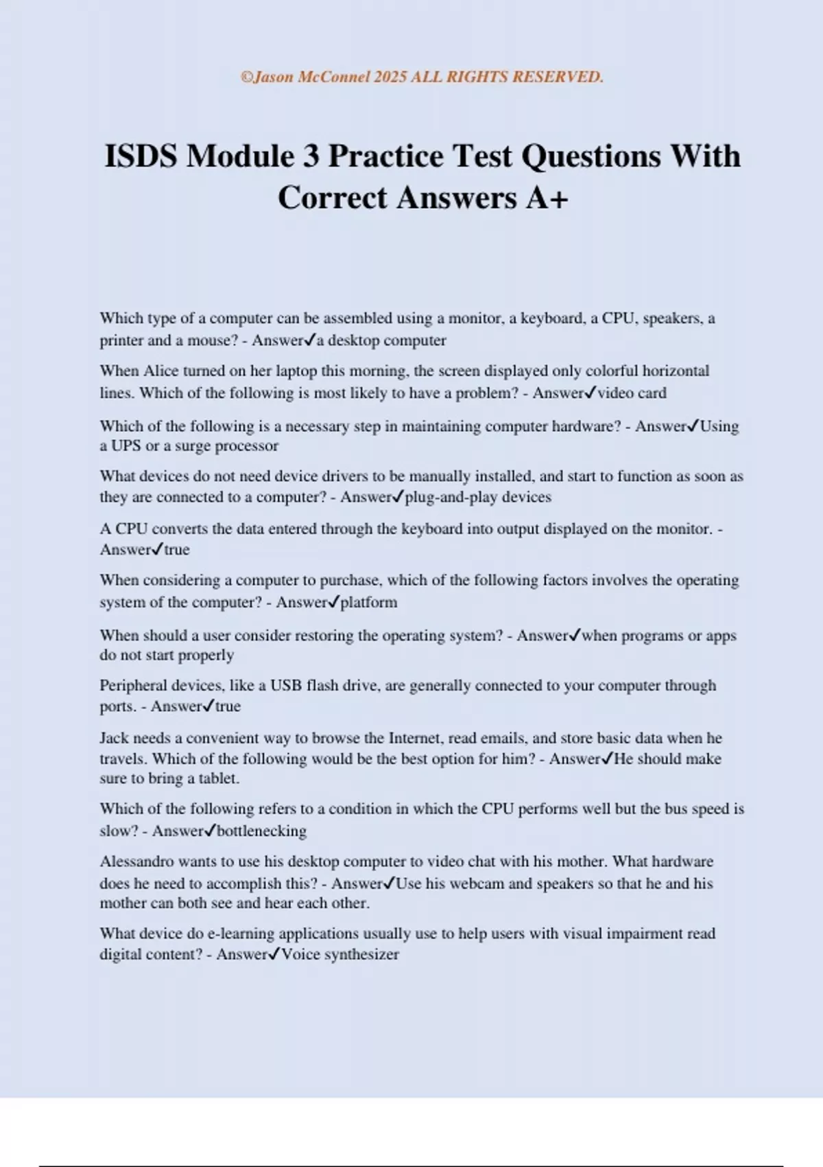 ISDS Module 3 Practice Test Questions With Correct Answers A+