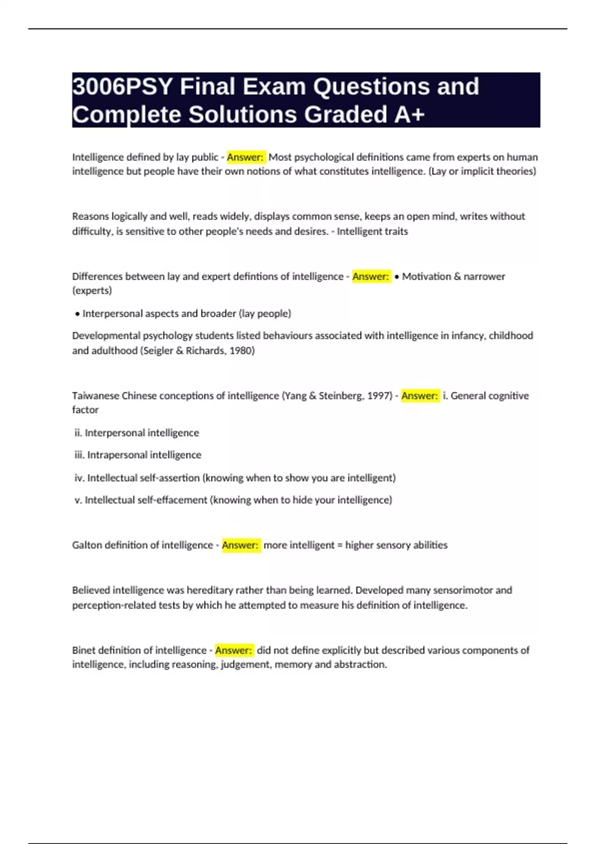 Quality you can trust: written by students who passed their tests and reviewed by others who've used these notes.