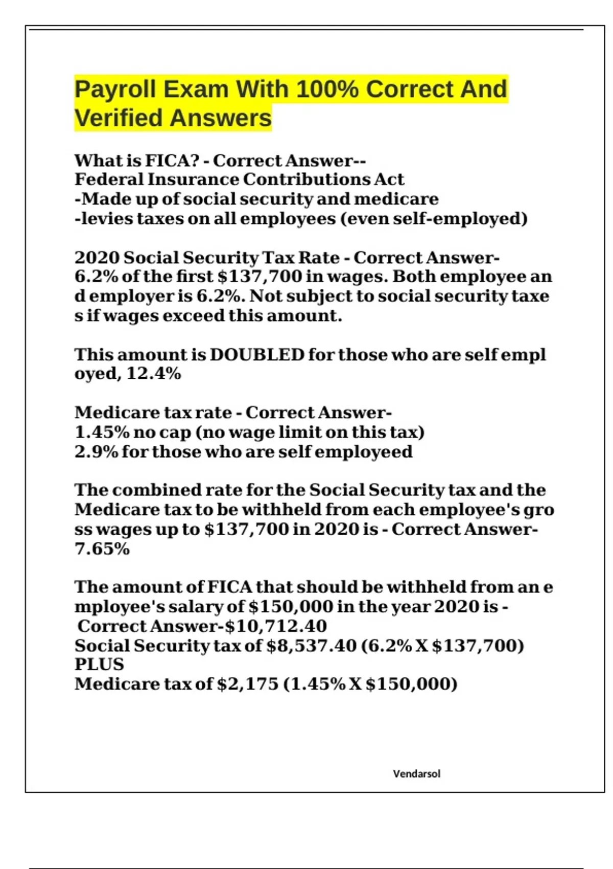 Payroll Exam With 100% Correct And Verified Answers Payroll Basics 1 Exam Test With 100% Correct And Verified Answers Mastering Payroll Final Exam With 100% Correct And Verified Answers Certified Payroll Professional Exam (CPP) Part 2 With 100% Correct And Verified Answers Certified Payroll Professional Exam With 100% Correct And Verified Answers