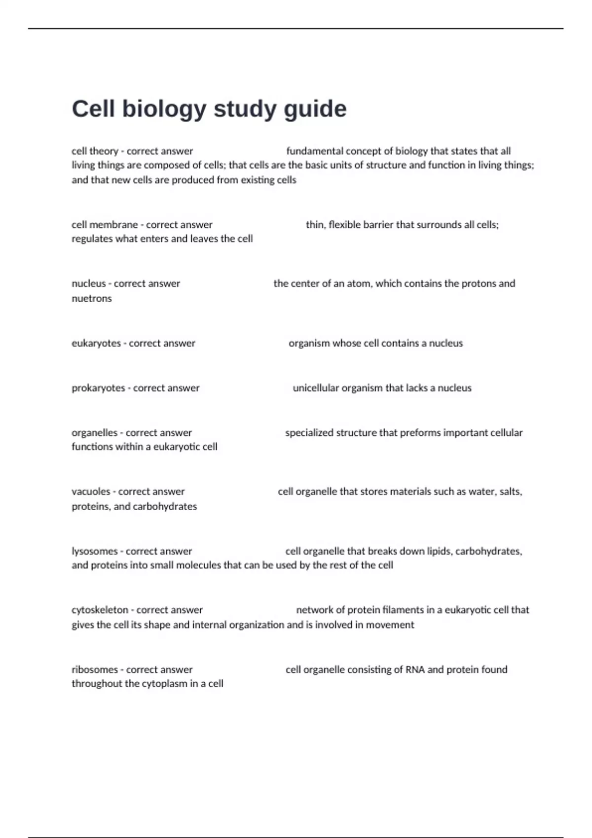 1 Exam (elaborations) 5BBB0209 - Cell biology Real Exam Prep Questions And Correct Answers With Detailed Rationales. 2 Exam (elaborations) Cell Biology and Biochemistry 2024 Exam Latest Version 100% Correct And Detailed Answers And Questions. 3 Exam (elaborations) Cell Biology Test 1 Evan Kaplan Real Exam Questions And Answers Well Detailed 100%