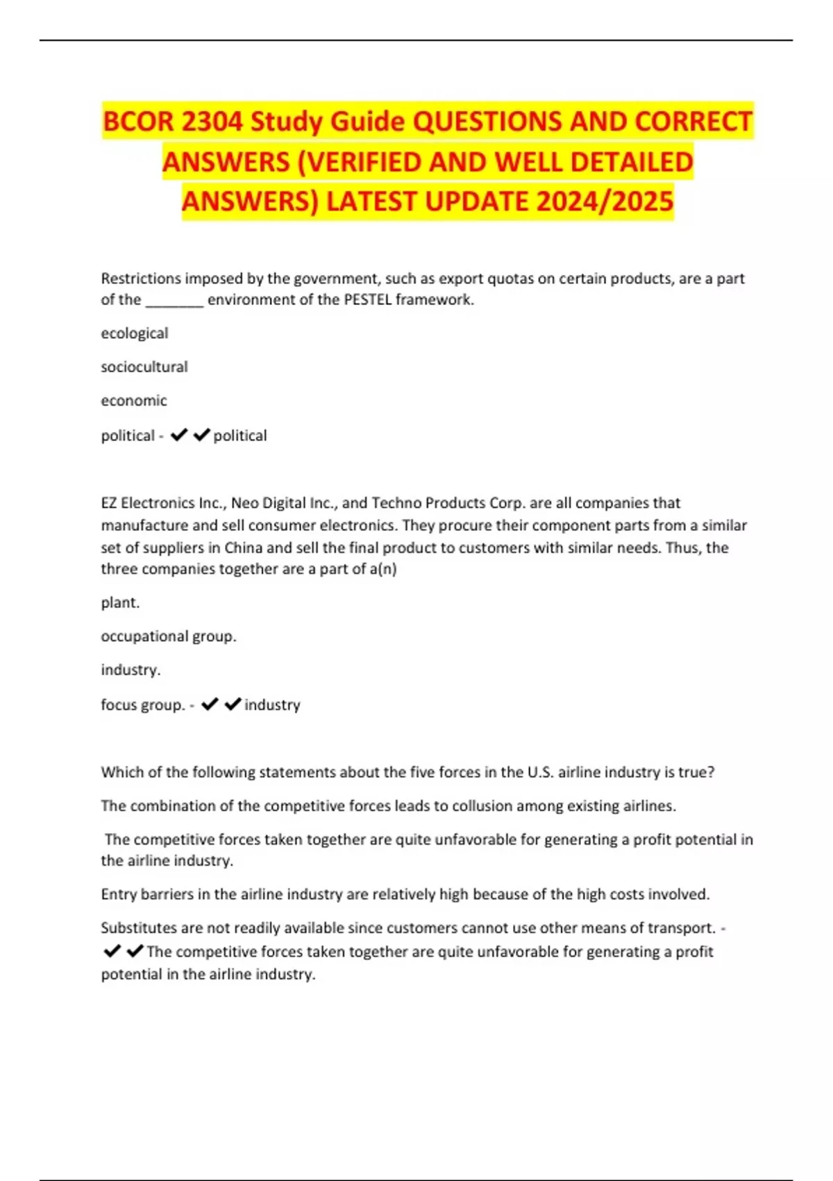 BCOR 2304 Study Guide QUESTIONS AND CORRECT ANSWERS (VERIFIED AND WELL DETAILED ANSWERS) LATEST UPDATE 2024/2025