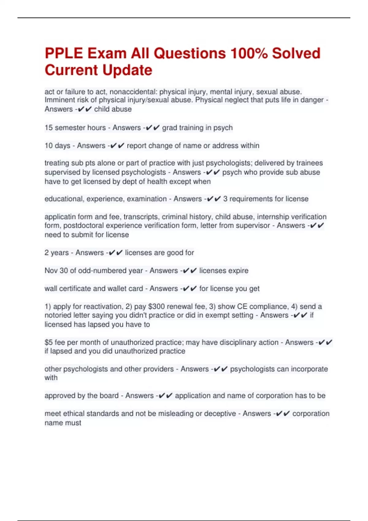 1 Exam (elaborations) PPLE Final Exam Questions and Solutions (A+) 2 Exam (elaborations) PPLE Module 1 Exam Questions And Answers 100% correct 3 Exam (elaborations) PPLE (PA Psychology Law Exam) By The Numbers Exam All Questions 100% Solved Current Update 4 Exam (elaborations) PPLE Exam Questions with 100% correct Answers 5 Exam (elaborations)