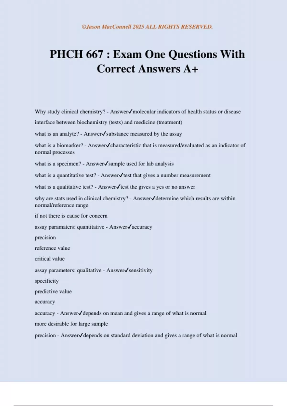 PHCH 667 Final Exam Questions With Correct Answers A+