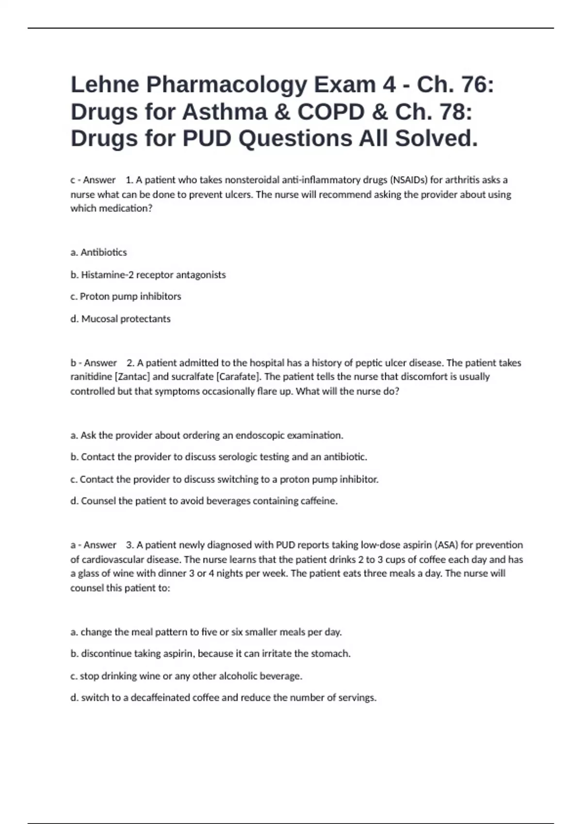 1 Exam (elaborations) Lehne s Pharmacology for Nursing Care Eleventh Edition Chapter 1 Exam Questions And Correct Answers. 2 Exam (elaborations) Lehne s Pharmacology CH 3 Test Questions And Accurate Answers. 3 Exam (elaborations) Lehne Pharmacology Gastrointestinal Agents Latest Exam And Correct Answers. 4 Exam (elaborations) Lehne Pharmacology