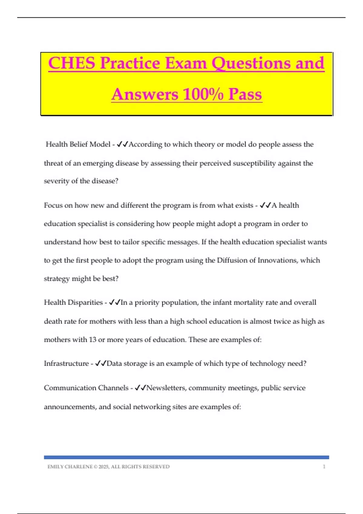 CHES Bundled Exams Questions and Answers 100% Pass, Guaranteed | Flash Sale 40% Discount Off!!