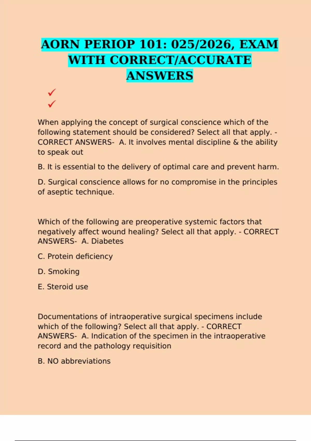 FINAL AORN PERIOP 101: 2025/2026, FINAL EXAM WITH CORRECT/ACCURATE ANSWERS AORN PERIOP 101: 025/2026, EXAM WITH CORRECT/ACCURATE ANSWERS EXAM QUESTIONS: AORN PERIOP 101, 2025/2026 WITH CORRECT/ACCURATE ANSWERS FINAL PT 2 EXAM: AORN PERIOP 101, 2025/2026 WITH CORRECT/ACCURATE ANSWERS MODULE QUESTIONS EXAM: AORN PERIOP 101, 2025/2026 WITH CORRECT/ACC