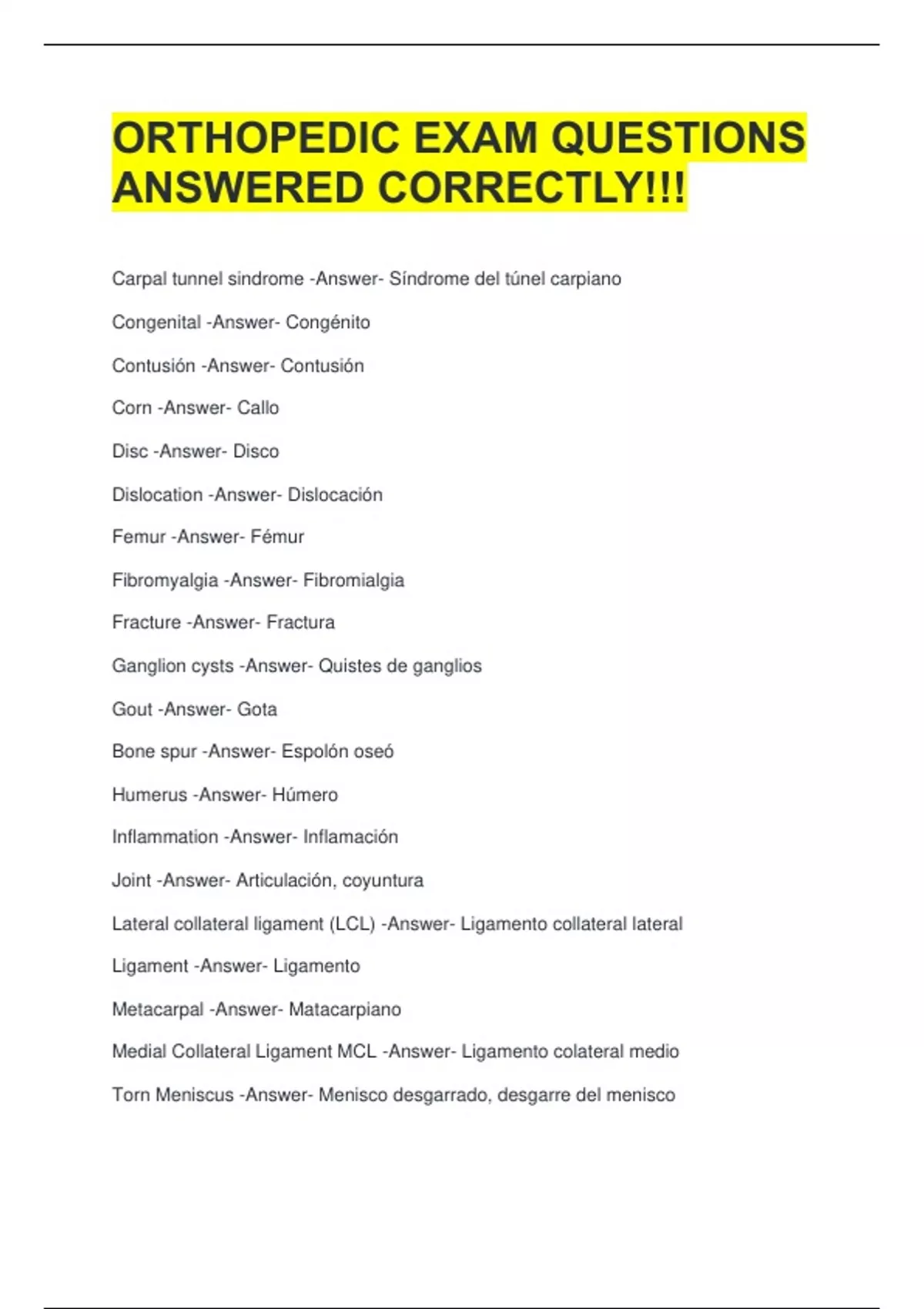 Bundle For ORTHOPEDICS EXAMINERS QUESTIONS AND ANSWERS (SET TO SCORE A+)