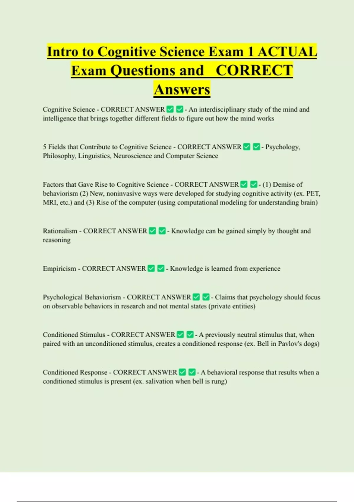 Cognitive Science Bundled Exam Questions and CORRECT Answers