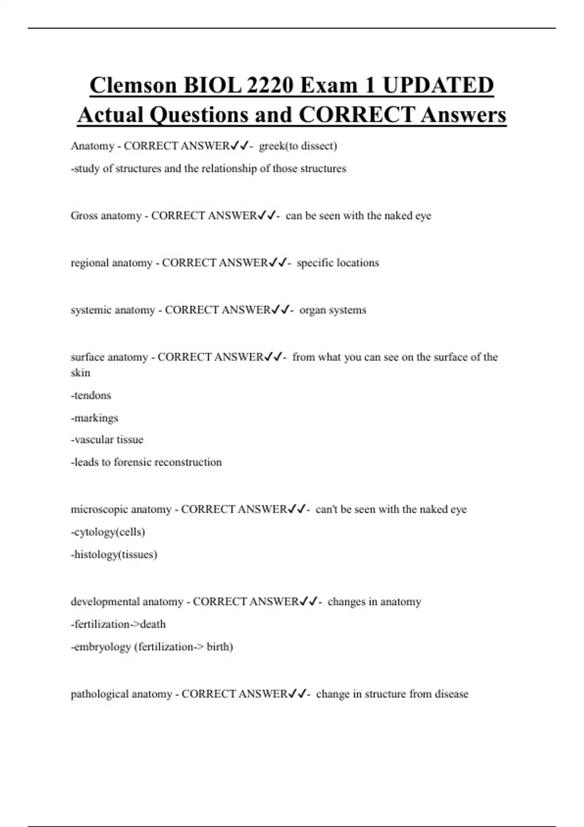 BIOL 2220 Bundled Exam Questions and CORRECT Answers
