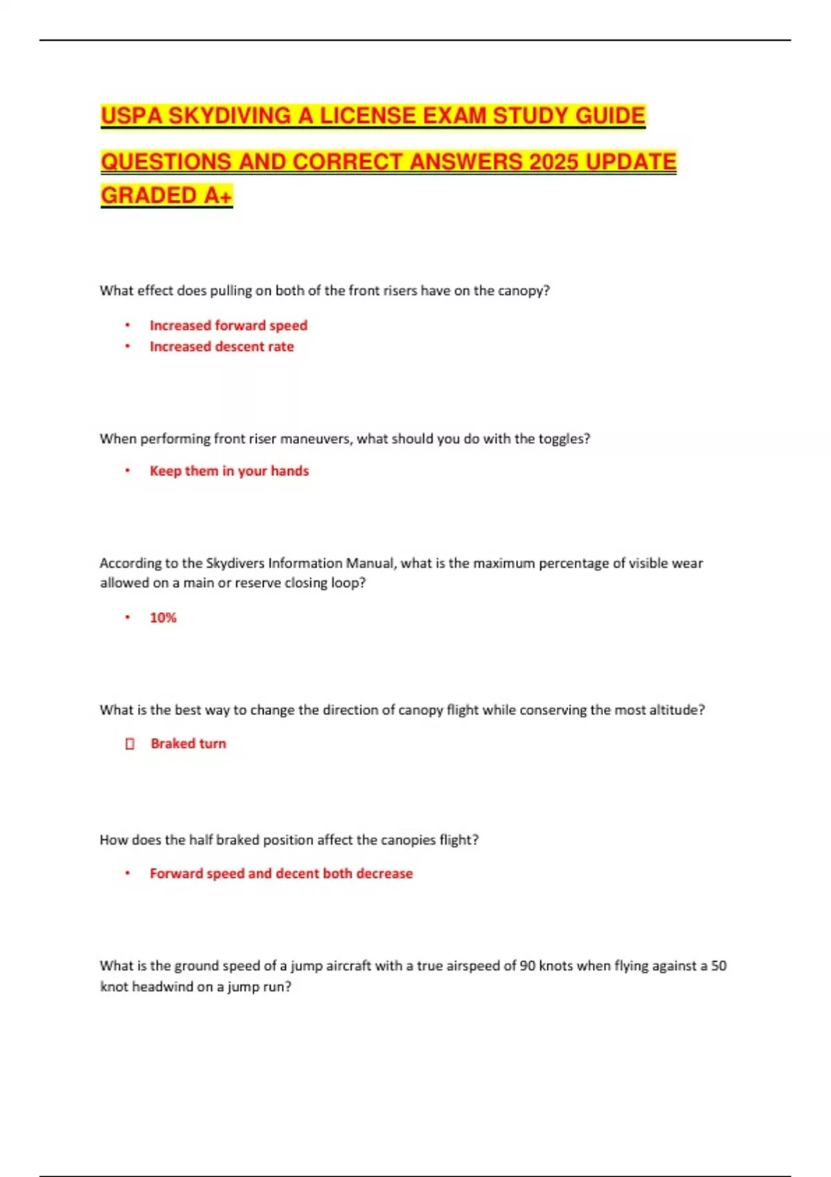 USPA SKYDIVING EXAM BUNDLE |Questions and answers| latest updates 2025