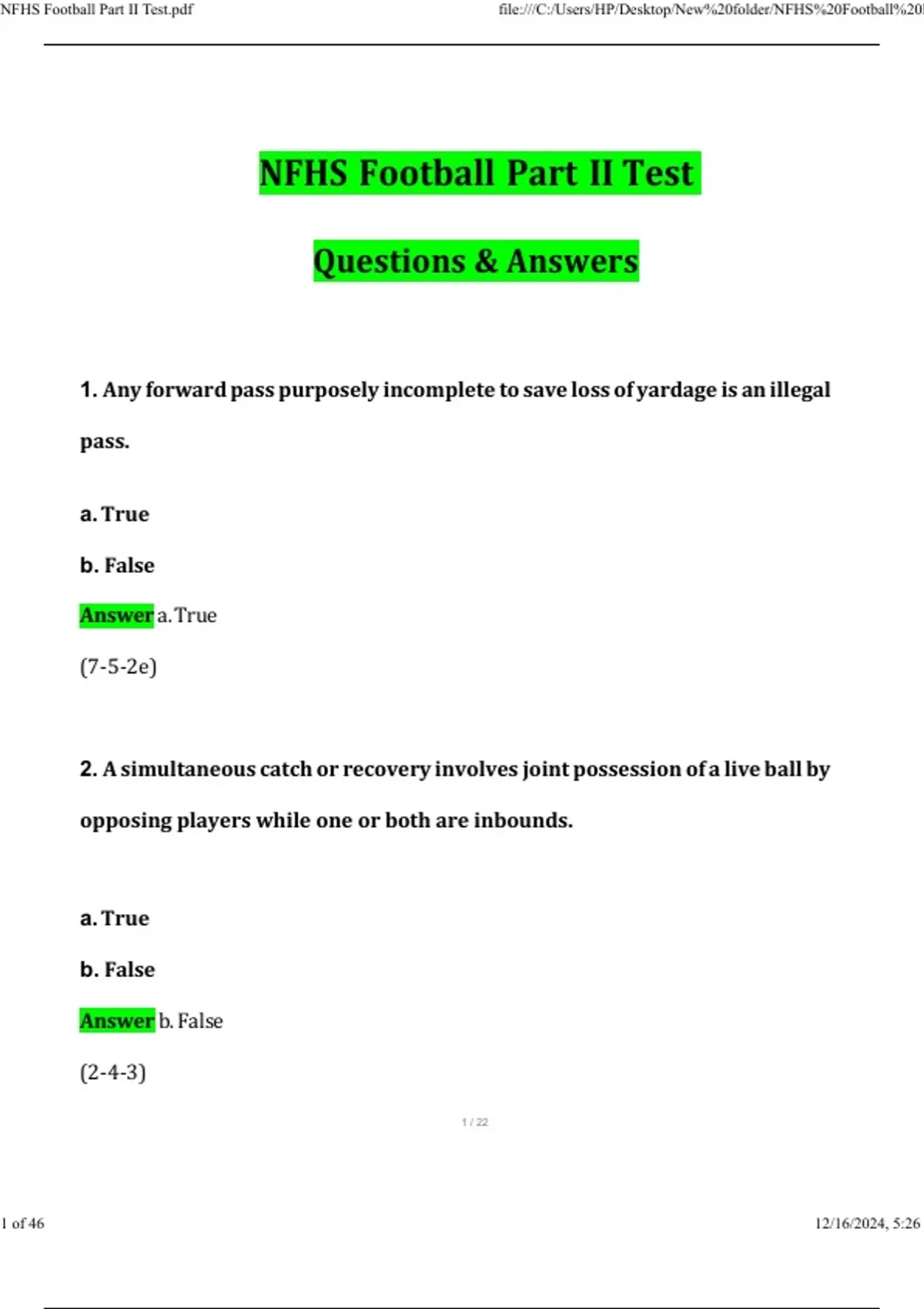 NFHS FULLY COVERED BUNDLE EXAMS NFHS FOOTBALL TEST EXAM / NFHS WV Football Part I & II Test / NFHS Football Part 2 Test 2025 Questions and Answers (2025 / 2026) (Verified Answers)