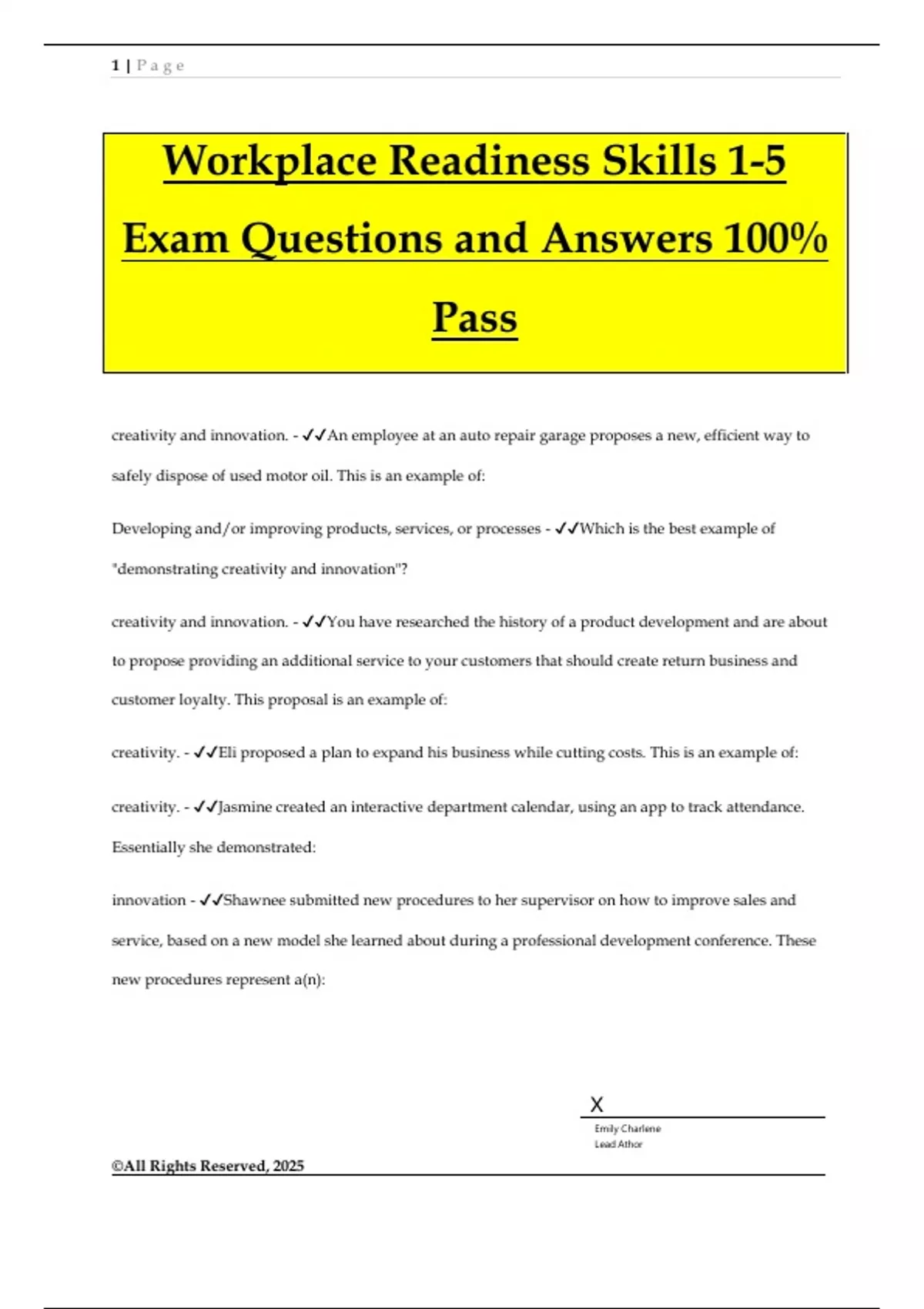 Workplace Readiness Skills Bundled Exams Questions and Answers 100% Pass Guaranteed | New Update!!