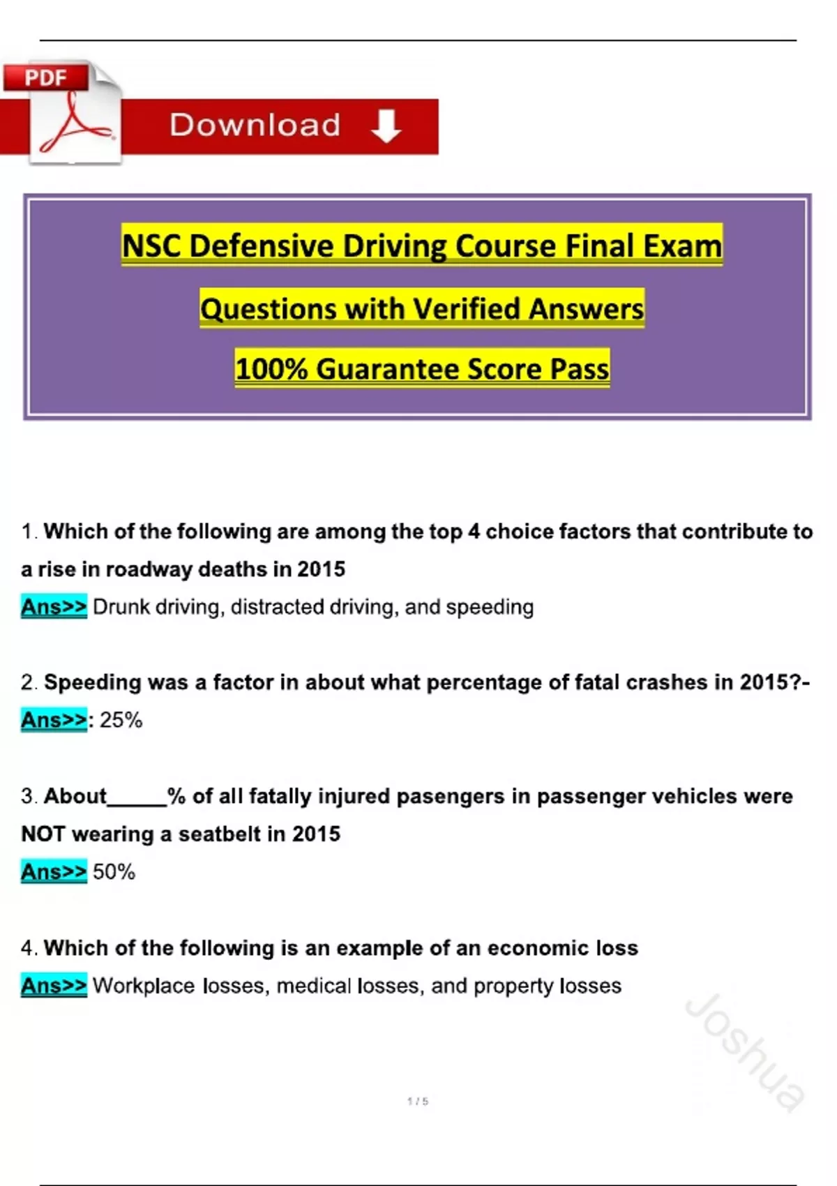 NSC Defensive Driving Course Final Exam + Study Guide: ALL IN ONE (2025 / 2026) Questions with Revised Answers