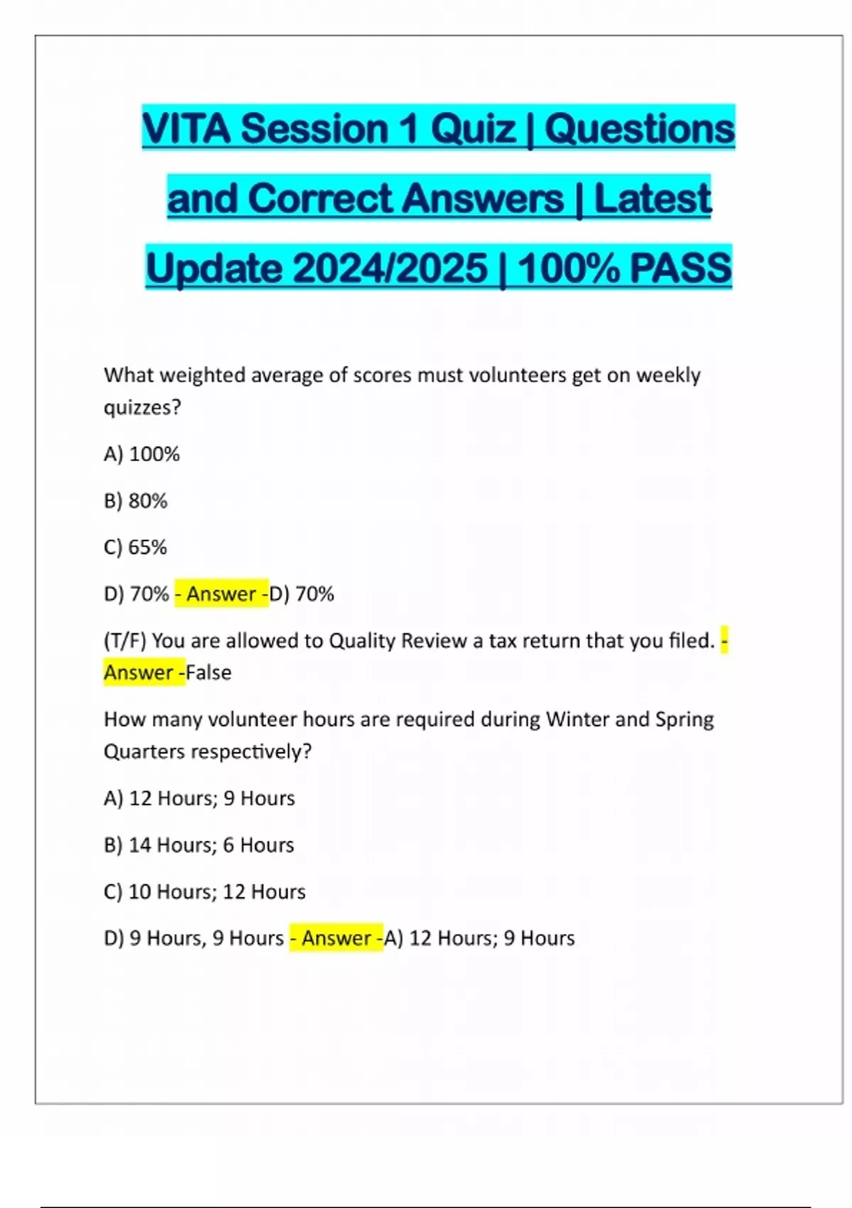 VITA CERTIFICATION BUNDLED EXAMS:::: Q&A LATEST 2024/2025