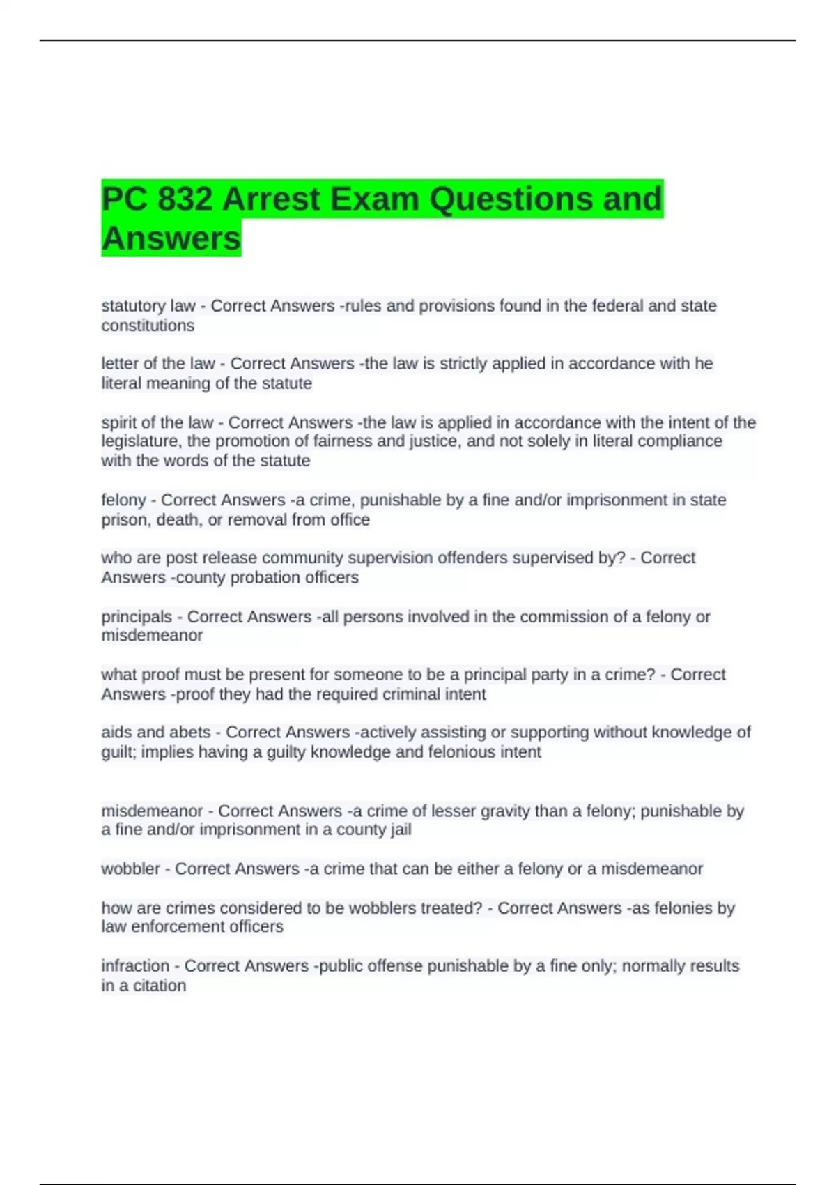 1 Exam (elaborations) Pc 832, PC 832 Exam Questions and Answers 2 Exam (elaborations) PC 832, LD 15 Laws of Arrest Exam Questions and Answers 3 Exam (elaborations) PC 832 Practice Study Set with correct Answers 4 Exam (elaborations) PC 832 Practice Quiz with correct Answers 2025 5 Exam (elaborations) PC 832 Practice Quiz with complete solutions
