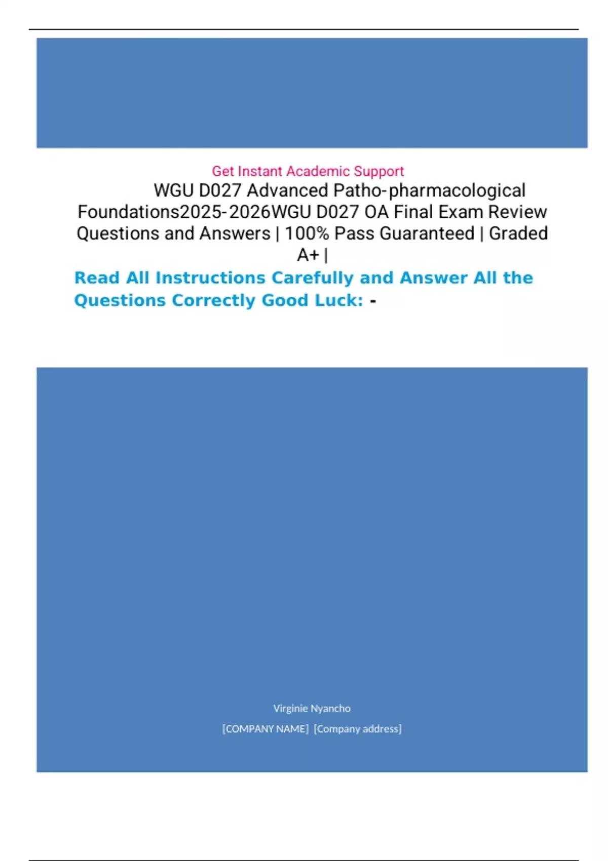 WGU D027 Advanced Patho-pharmacological Foundations Clinical Practice Experience D027 CPE WGU Clinical Practice Experience D027 CPE Exam Preparation Compilation Bundle | Grades A+| 100% Pass Guarantee | Achieve Success! Invest in your success today! Your Success, Our Mission. Let's Achieve Academic Excellence Together