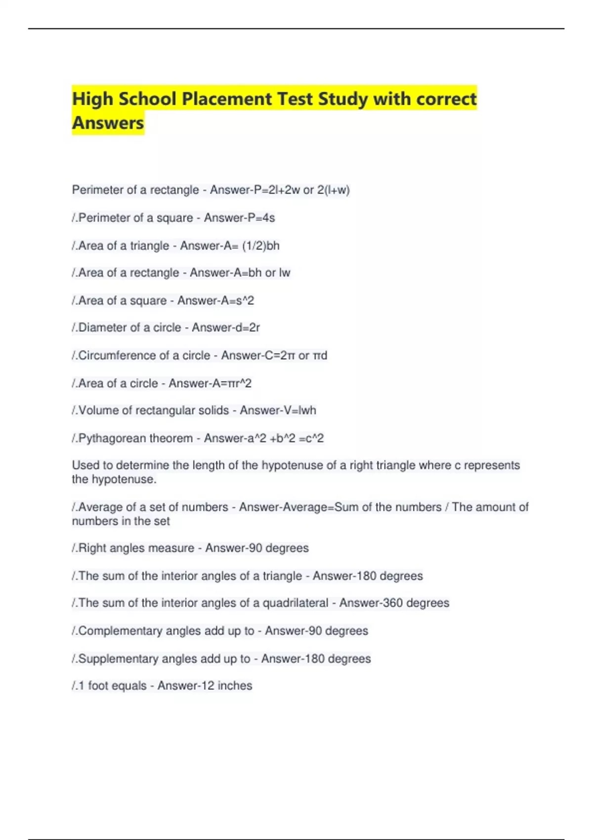 1 Exam (elaborations) High School Placement Test Study with correct Answers 2 Exam (elaborations) High School Placement Test (HSPT) Vocabulary Cards A-M Questions and Answers