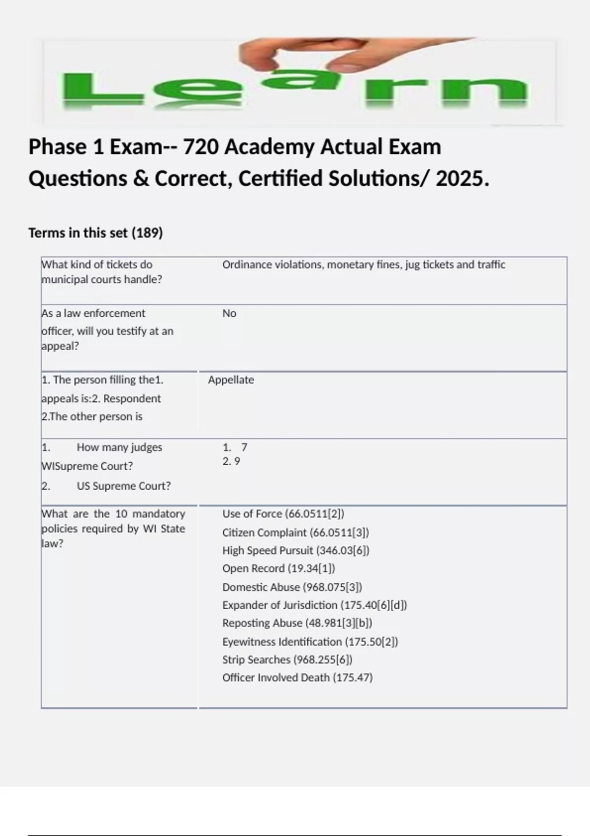 1 Exam (elaborations) Phase 1 Exam-- 720 Academy Actual Exam Questions & Correct, Certified Solutions/ 2025. 2 Exam (elaborations) 720 Academy Phase 1 Actual Exam Questions & Correct Answers / 2025.