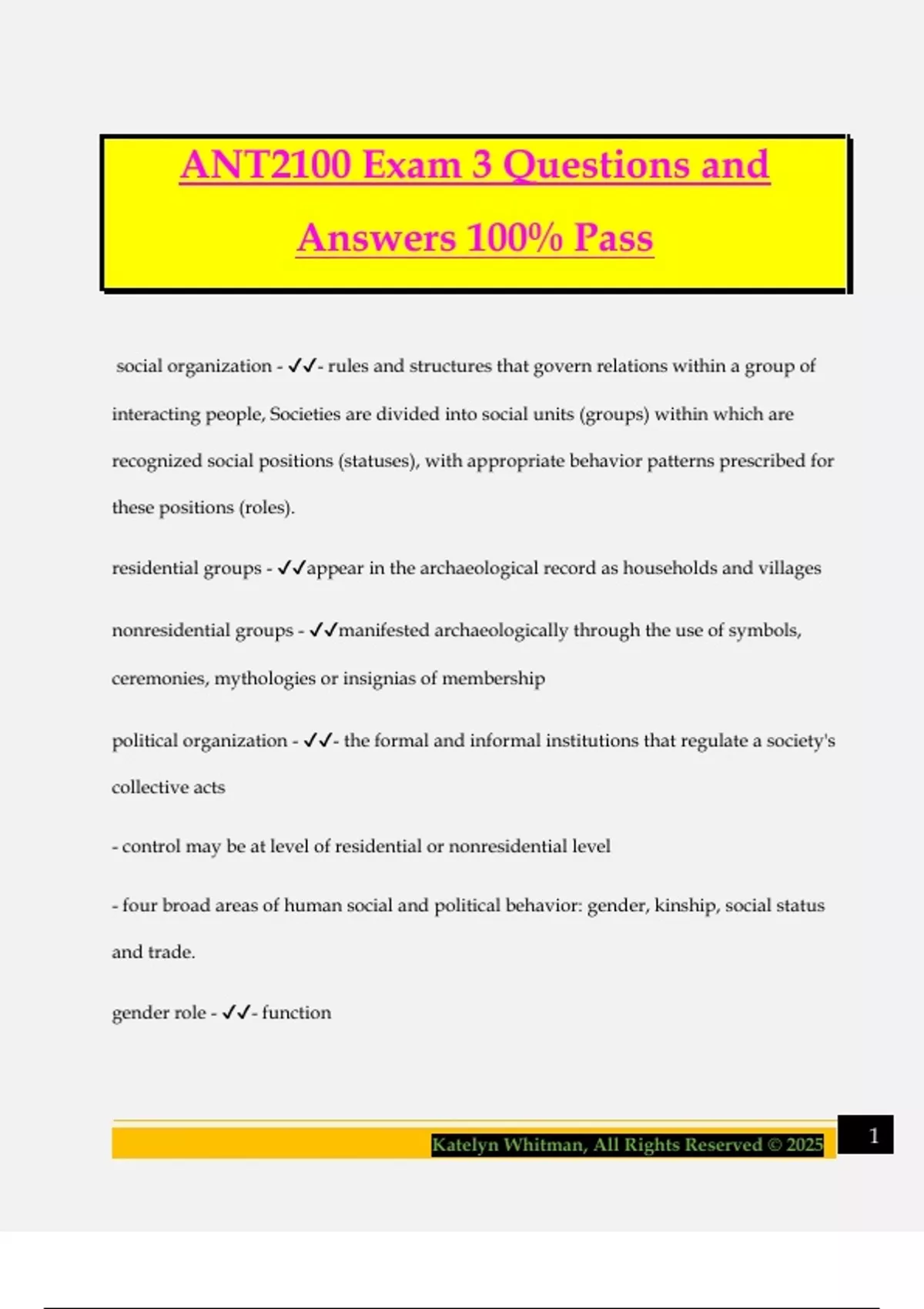ANT 2100 Bundled Exams Questions and Answers 100% Pass Guaranteed