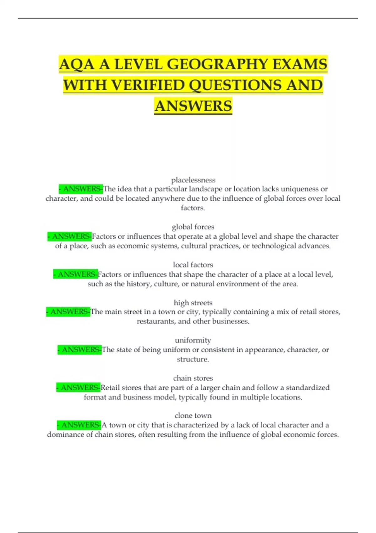 Package deal AQA A-level GEOGRAPHY