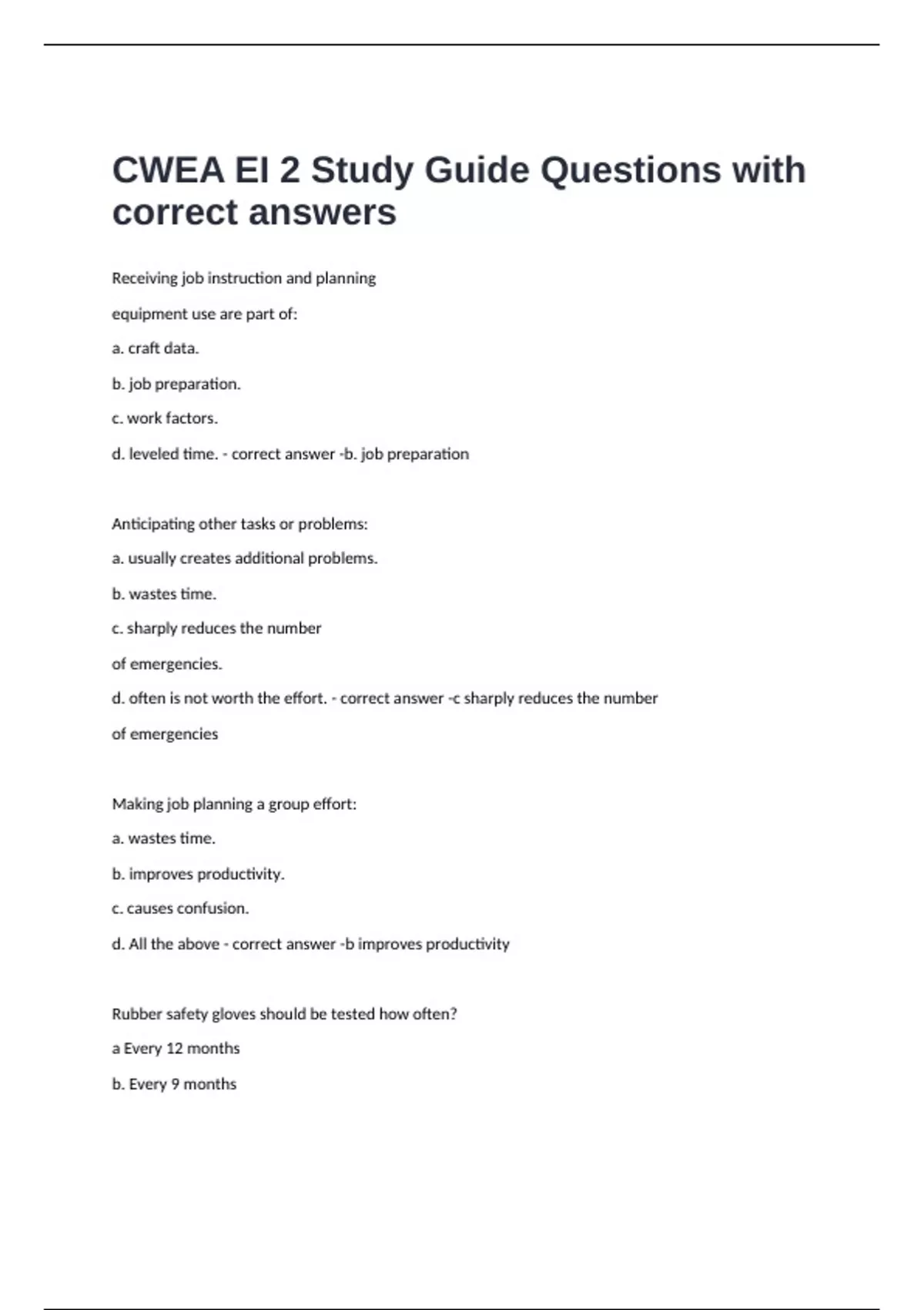 CWEA EI 2 Study Guide Questions with correct answers.