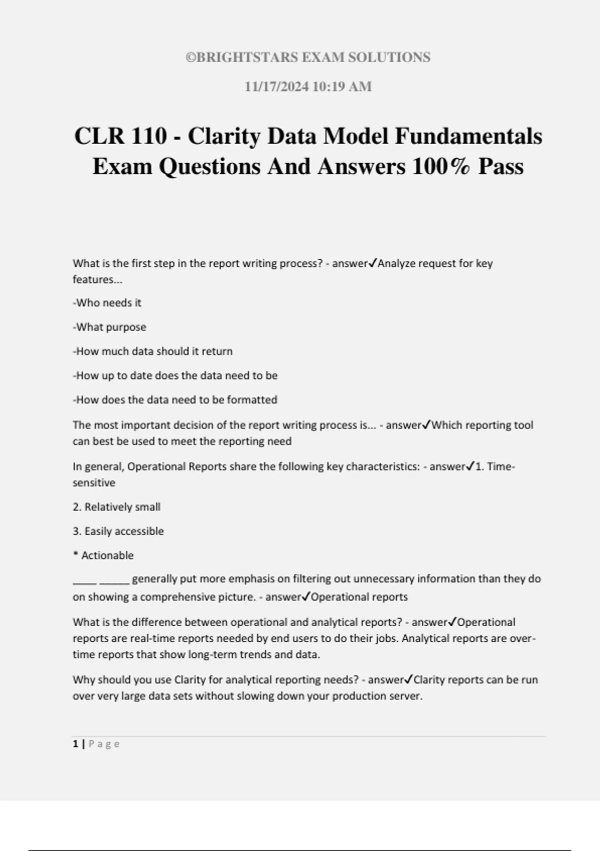 CLR 110 - Clarity Data Model Fundamentals Exam Questions And Answers 100% Pass