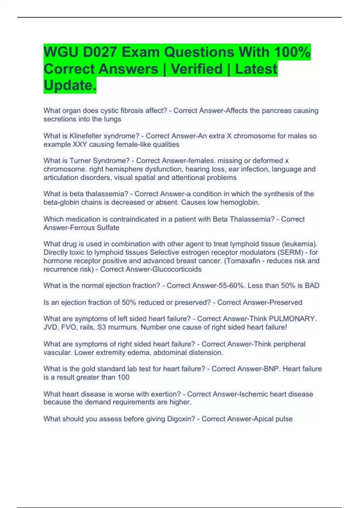 WGU D027 Exam Questions with 100% Correct Answers | Latest Version (2024/2025) Expert Verified WGU D027 CPE Exam Questions With Complete Solution| Verified | Latest Update WGU D027 ADVANCED PATHOPHARMACOLOGY PRACTICE TEST QUESTIONS WITH 100% CORRECT ANSWERS | VERIFIED | LATEST UPDATE WGU D027 Exam Questions With 100% Correct Answers 2025 WGU D027