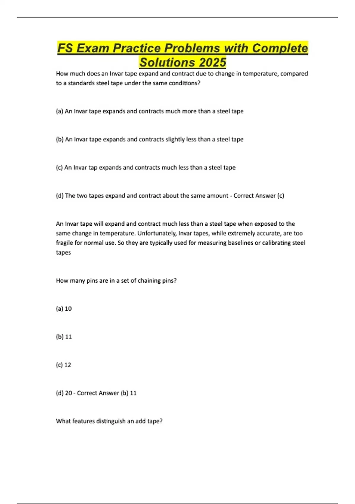 Fundamentals of Surveying (FS) Bundle Complete Solutions with Solutions 2025