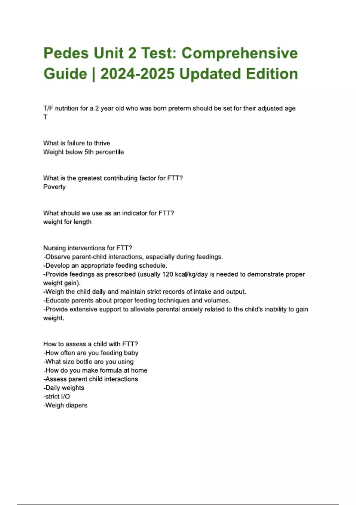 Pediatrics Exam Growth questions ( Latest 2024 / 2025 Update) Actual Questions and Answers |100% Verified Correct | 100% satisfaction guarantee