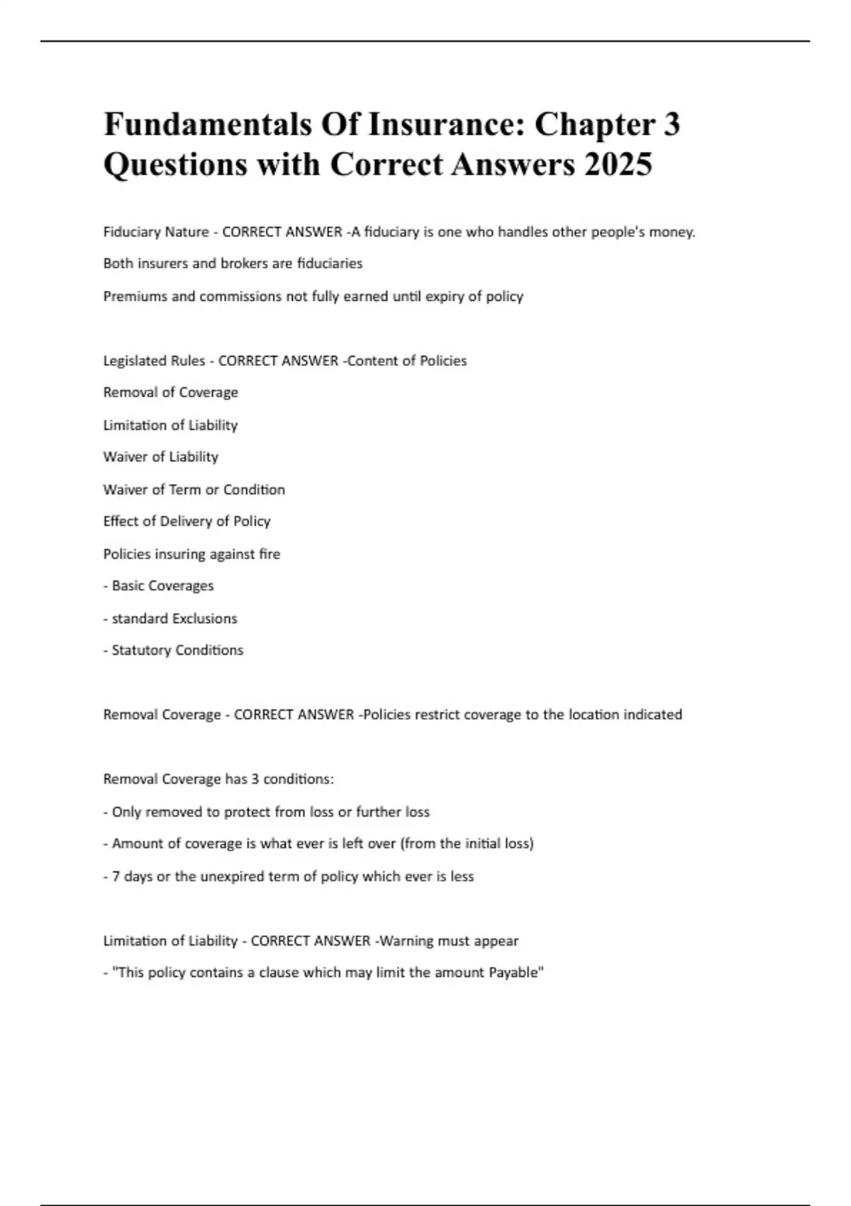 Fundamentals Of Insurance Exam Questions with 100% Correct Answers | Latest Version (2025) Expert Verified